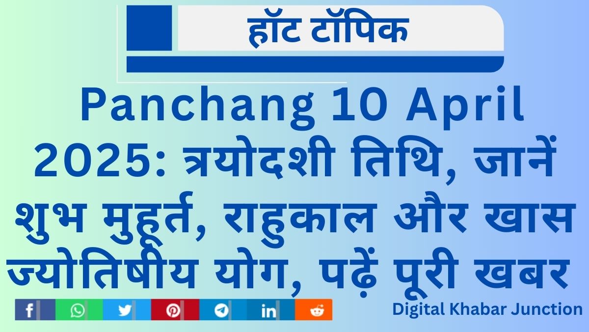 Panchang 10 April 2025, गुरुवार का दिन है। बृहस्पति ग्रह का स्वामीत्व होने के कारण यह दिन विद्या, धन और धार्मिक कार्यों के लिए अत्यंत शुभ माना जाता है। गुरुवार को भगवान विष्णु की पूजा का विशेष महत्व होता है। इस दिन किए गए दान-पुण्य का कई गुना अधिक फल मिलता है।